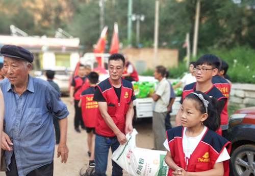 在發(fā)放現(xiàn)場(chǎng),受災(zāi)群眾感受到了志愿者的關(guān)愛,看在眼里,暖在心里,整個(gè)村里呈現(xiàn)出一片溫馨快樂(lè)的氛圍。