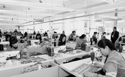 4月16日,河曲縣職業(yè)教育中心服裝加工車間里技術(shù)工人正在加班加點(diǎn)趕制夏季服飾。為促進(jìn)貧困勞動(dòng)力轉(zhuǎn)移就業(yè),該縣職教中心去年引進(jìn)江蘇省常熟市祥鼎祥服飾有限公司,并與之簽訂校企合作協(xié)議,有效帶動(dòng)農(nóng)村貧困勞動(dòng)力轉(zhuǎn)移就業(yè)。目前已有83名經(jīng)過(guò)培訓(xùn)的農(nóng)村貧困婦女成為服裝加工技術(shù)工人,月收入2000多元。(鄔耿杰 攝)