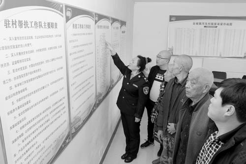 圖為環(huán)保干部為村民講解上墻公開的幫扶職責。金俊賢 攝