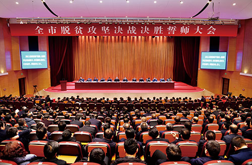 圖為全市脫貧攻堅(jiān)決戰(zhàn)決勝誓師大會(huì)會(huì)場。本報(bào)記者 劉紀(jì)森 攝