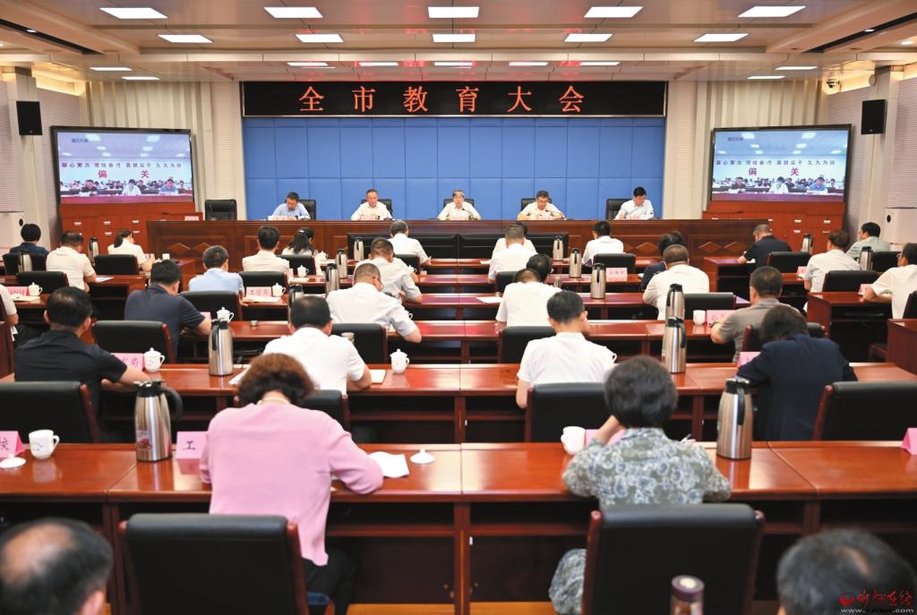 會(huì)議充分肯定近年來(lái)全市教育事業(yè)發(fā)展取得的成績(jī),對(duì)教育強(qiáng)市建設(shè)各項(xiàng)重點(diǎn)工作作出全面部署。會(huì)議指出,要堅(jiān)持不懈用習(xí)近平新時(shí)代中國(guó)特色社會(huì)主義思想鑄魂育人,一體化推進(jìn)大中小學(xué)思想政治教育,培養(yǎng)德智體美勞全面發(fā)展的社會(huì)主義建設(shè)者和接班人。要堅(jiān)持以人民為中心發(fā)展教育,推動(dòng)義務(wù)教育優(yōu)質(zhì)均衡發(fā)展,促進(jìn)學(xué)前教育普及普惠和高中階段學(xué)校多樣化發(fā)展,前瞻性優(yōu)化區(qū)域教育資源配置,持續(xù)鞏固“雙減”成果,不斷提升基礎(chǔ)教育服務(wù)質(zhì)量。要統(tǒng)籌實(shí)施科教興市、人才強(qiáng)市、創(chuàng)新驅(qū)動(dòng)發(fā)展戰(zhàn)略,加快構(gòu)建現(xiàn)代職業(yè)教育體系,增強(qiáng)高等教育綜合實(shí)力,培育壯大科技創(chuàng)新力量,不斷塑造高質(zhì)量發(fā)展新動(dòng)能新優(yōu)勢(shì)。要強(qiáng)化師德師風(fēng)建設(shè),優(yōu)化完善教師管理體制,厚植尊師重教社會(huì)風(fēng)尚,大力培養(yǎng)鍛造一支師德高尚、業(yè)務(wù)精湛、結(jié)構(gòu)合理、充滿活力的高素質(zhì)專業(yè)化教師隊(duì)伍。要進(jìn)一步深化教育領(lǐng)域綜合改革,進(jìn)一步擴(kuò)大教育開放合作交流,進(jìn)一步建設(shè)全民終身學(xué)習(xí)的學(xué)習(xí)型社會(huì),充分激發(fā)教育高質(zhì)量發(fā)展的生機(jī)活力。