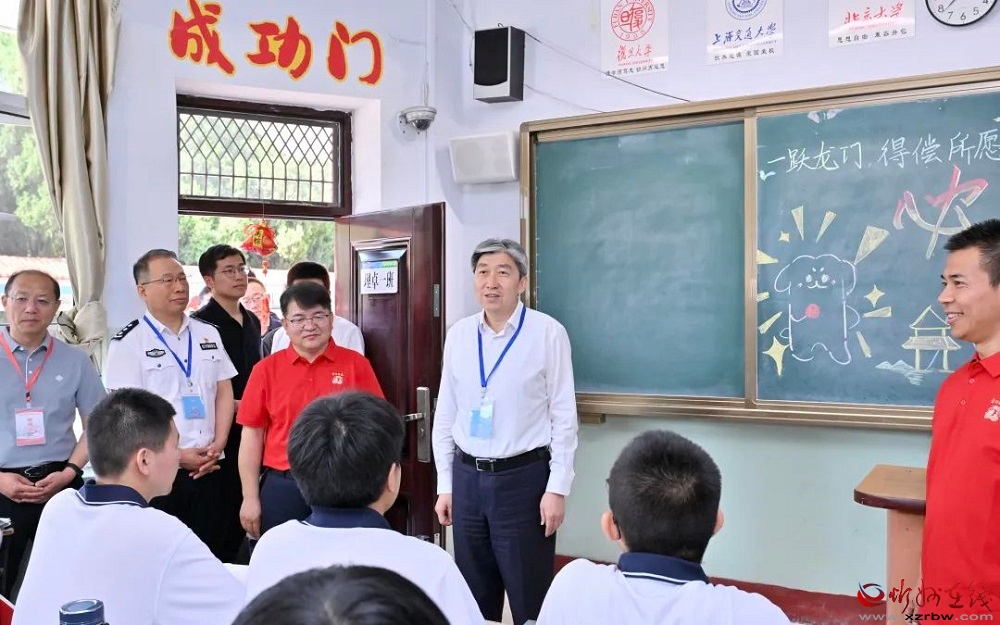 朱曉東在忻州一中督導(dǎo)檢查高考準(zhǔn)備工作。馮曉磊 攝 本報訊(記者喬龍飛)2025年高考在即,6月6日上午,市委書記朱曉東深入市教育局及忻州城區(qū)部分高考考點,對高考準(zhǔn)備工作進(jìn)行全面督導(dǎo)檢查,確保高考安全、平穩(wěn)、有序進(jìn)行。省巡視檢查團總團長、山西中醫(yī)藥大學(xué)副校長苗強及省巡視檢查團其他成員,副市長史紅波、李碩及相關(guān)部門負(fù)責(zé)人一同參加。 在市教育局考試指揮中心、保密室,朱曉東詳細(xì)了解了全市高考考務(wù)組織、監(jiān)控運行、應(yīng)急處置、值班值守等情況,并與教育、公安等部門負(fù)責(zé)人會商高考保障等工作,要求確保設(shè)備穩(wěn)定、信息暢通、試卷安全,嚴(yán)格落實考務(wù)流程規(guī)范要求,強化培訓(xùn)管理,全力以赴為考生提供安全舒適的考試條件。 隨后,朱曉東一行先后來到忻州一中、忻州二中考點,聽取匯報,了解各項準(zhǔn)備工作的落實情況,實地察看相關(guān)考點考場布置、設(shè)備調(diào)試、人員安排、周邊秩序等情況。他強調(diào),高考關(guān)系到廣大考生的前途命運和千家萬戶的切身利益,是社會關(guān)注的焦點。山西又是第五批高考綜合改革落地省份,各相關(guān)部門要秉持高度的責(zé)任感,全流程規(guī)范管理,全鏈條優(yōu)化服務(wù),全力保障高考順利進(jìn)行。各考點要堅持以考生為本,從嚴(yán)從細(xì)抓好考試組織與服務(wù)保障工作,全力營造安全、平穩(wěn)、規(guī)范的考試環(huán)境。要嚴(yán)格落實高考工作相關(guān)要求,嚴(yán)明考試紀(jì)律,嚴(yán)守安全底線,壓實工作職責(zé),強化人防、物防、技防等措施,做好考務(wù)人員培訓(xùn)與管理,守好公平公正“生命線”。要加強風(fēng)險預(yù)警與隱患排查,做好各類應(yīng)急預(yù)案,強化組織協(xié)調(diào)和調(diào)度指揮,為高考安全平穩(wěn)進(jìn)行提供堅實支撐,確保實現(xiàn)“平安高考”目標(biāo)。 在忻州一中理卓一班,朱曉東與師生們親切交流,為即將參加高考的學(xué)子們加油打氣,鼓勵大家相信自己,筆鋒所至夢想成真;同時,祝愿全市考生不負(fù)韶華,在考場上乘風(fēng)破浪,取得優(yōu)異成績,開啟屬于自己的精彩人生。