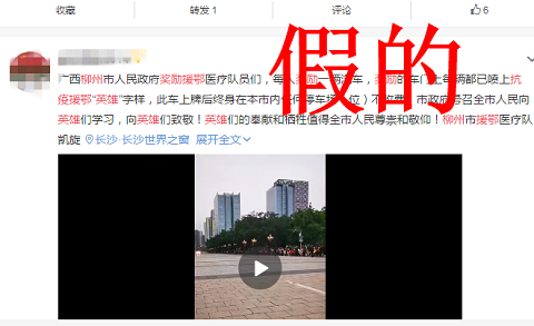 在一些微信群里,“柳州市獎勵援鄂醫(yī)療隊員們,每人獎勵一輛汽車,獎勵的車門上每輛都已噴上抗疫援鄂‘英雄’字樣,此車上牌后終身在本市內(nèi)任何停車場(位)不收費”的信息比比皆是。在抖音和微博平臺,還有不少網(wǎng)友以該信息為基礎(chǔ),配上了迎接援鄂抗疫英雄回柳的畫面,制作成了短視頻在網(wǎng)絡(luò)上傳播,加劇了虛假信息進一步傳播。