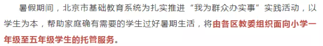 7月2日,北京市教育委員會表示,北京市各區(qū)教委將組織面向小學(xué)一年級至五年級學(xué)生的托管服務(wù)。