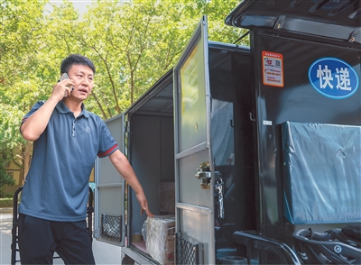 700專用號碼啟用后可方便消費(fèi)者識別、提升快遞員、外賣員配送效率。在網(wǎng)約車行業(yè)推廣后,700專用號碼還將助力乘客精準(zhǔn)識別駕駛員來電,讓駕駛員接單更順暢,減少停車?yán)@行。圖為6月29日,陜西省西安市的一位快遞員正用手機(jī)聯(lián)系顧客,準(zhǔn)備派送快件。新華社記者 毛思倩攝