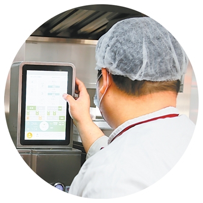 圖為廚師正在操作AI炒菜機(jī)。人民日?qǐng)?bào)記者 王洲攝