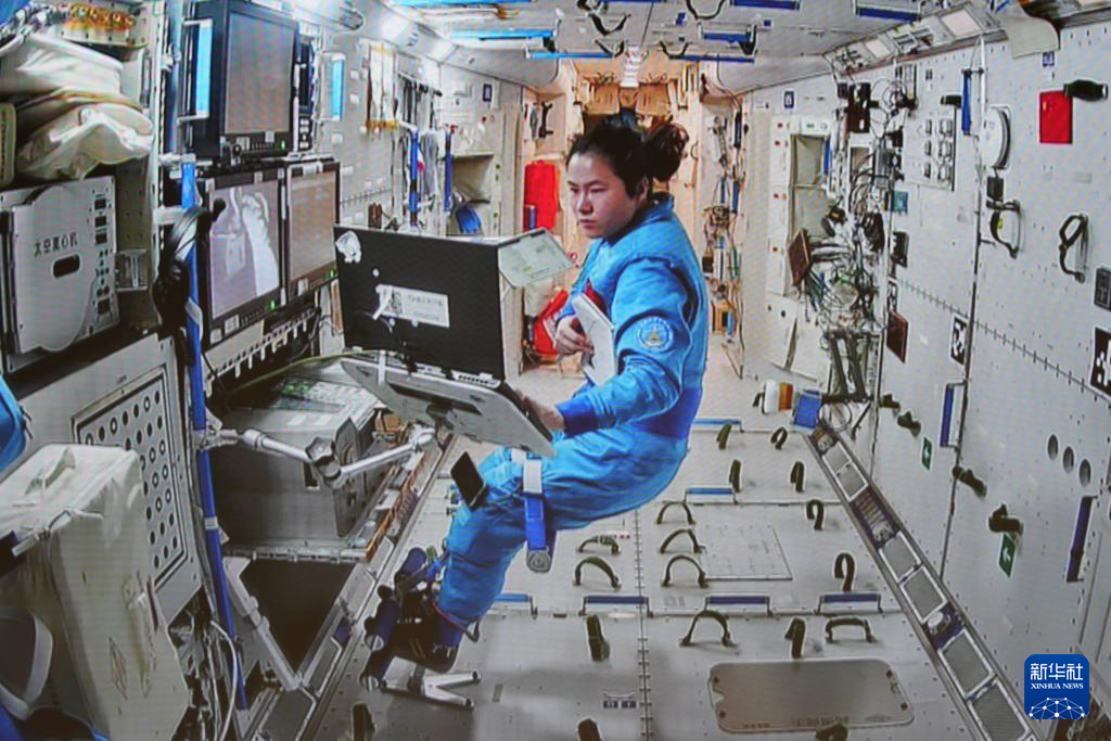 1月20日在北京航天飛行控制中心拍攝的神舟十九號航天員王浩澤在空間站組合體艙內(nèi)協(xié)同工作的畫面。新華社記者 劉芳 攝