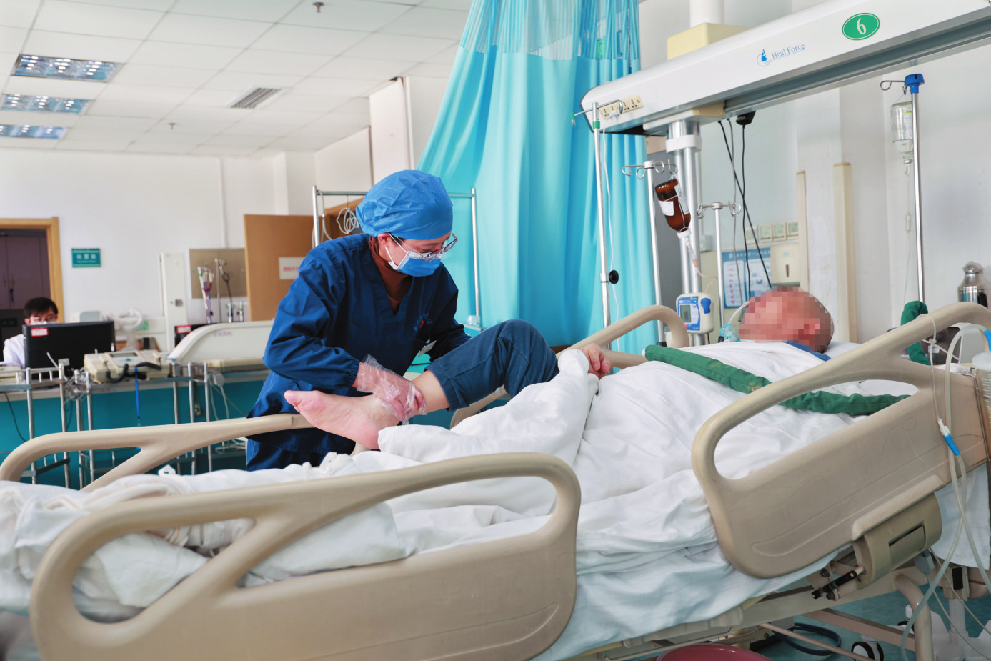 “相比普通病房,ICU護士的工作要更繁瑣,使用到的醫(yī)療器械要更多,面對的突發(fā)事件也多,要隨時做好與‘死神’搏斗的準備。”任文霞一邊細心地更換夾在患者手指的氧飽和度儀,避免患者壓到導線,一邊在忙碌間隙告訴記者,“ICU病房不允許家屬陪護,病人的進食、翻身、清洗等所有護理都由護士獨立完成,面對這些瑣碎的細活,護理工作必須要嚴謹細微,不能有絲毫怠慢?!?/p>