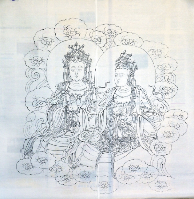 在李向東看來,臨寫是為了學(xué)習(xí)而不是“復(fù)制”壁畫。面對殘破或年久漫漶不清的畫面,他從蛛絲馬跡入手反復(fù)揣摩,根據(jù)壁畫整體的線描、造型特點,一一補(bǔ)而畫之,最后定稿。從這個意義上說,李向東也使殘破的公主寺壁畫得以復(fù)原,“補(bǔ)壁”之功不可小覷。