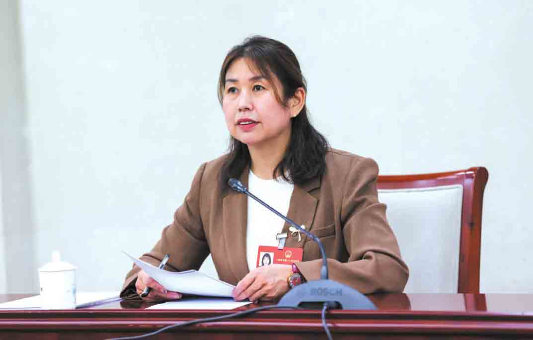 全國人大代表、山西高陶瓷業(yè)有限責任公司質量控制員范銀蓮正在宣講兩會精神。