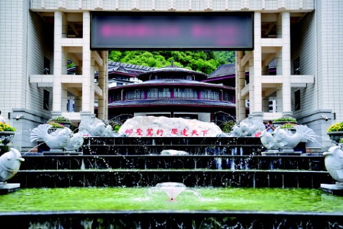 但校園內(nèi)比較顯眼的是一些與教學無關(guān)的設(shè)施:從氣派的仿古牌坊式大門進入校園,4層噴泉水景沿步道拾級而上,16尊石刻鯉魚分布兩側(cè),一方約8米長、1.5米高的校訓大理石碑位于噴泉盡頭。據(jù)學校工作人員介紹,該水景取“鯉魚跳龍門”之意,從西安拉來的校訓石碑就花費了五六萬元。