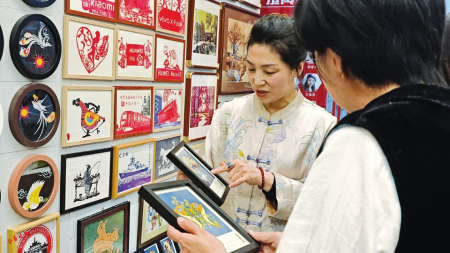 初夏時節(jié),走進山西上林苑傳統(tǒng)剪紙藝術研究所,身著一襲傳統(tǒng)服飾的王銀鳳笑吟吟地講述了她與太原剪紙、與非遺研培的往事,她的身后是內(nèi)容多樣、色彩豐富的剪紙作品。與剪紙結緣四十余載,王銀鳳剪出了一段充滿堅守與創(chuàng)新的人生故事。
