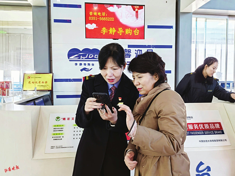 2月7日9時(shí)15分,太原南站候車(chē)大廳電子屏滾動(dòng)顯示著最新的車(chē)次信息,節(jié)前返鄉(xiāng)客流迎來(lái)一波小高峰,廣播里循環(huán)播報(bào)著靜音車(chē)廂、重點(diǎn)旅客服務(wù)、余票查詢等溫馨提示?!袄铎o導(dǎo)購(gòu)臺(tái)”前依舊圍滿了問(wèn)詢的旅客,此起彼伏的咨詢聲里,李靜與兩名值班員分工協(xié)作,一人負(fù)責(zé)退改業(yè)務(wù)引導(dǎo),一人負(fù)責(zé)重點(diǎn)旅客信息登記,李靜站在最外側(cè),直面旅客最急切、最棘手的各類(lèi)需求。