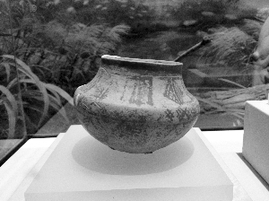 高淳博物館的二樓是一個(gè)“通史”展,從6300年前薛城聚落開始說起。彩陶罐、黑斑玉鐲、黑陶杯、螺螄、貝殼……這些“寶貝”都是從高淳薛城遺址出土的,它們已經(jīng)有6300歲了。這些陶器,造型優(yōu)美,尤其是黑陶杯,造型堪稱時(shí)尚,杯口還特意設(shè)置了喝水的凹槽。