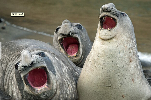 一群象海豹扯開嗓子拼唱功的圖片真是滑稽極了!英國《每日郵報》發(fā)布了一組有趣的圖片,記錄了象海豹們頭微微向后仰,張大嘴巴,試圖模仿明星們的可愛畫面。