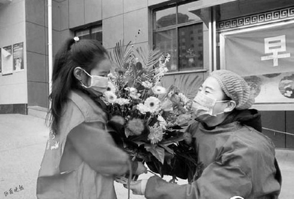 從2月13日到3月13日,在這三十天的時(shí)間里,曹東平夫妻凌晨4點(diǎn)起床,買(mǎi)菜購(gòu)貨,下廚掌勺,為了不使一線的工作人員受饑挨寒,他們專門(mén)購(gòu)置了保溫設(shè)備,每天行程二十多公里,趕在中午12點(diǎn)以前,把午餐送到工作人員手中,受到了交警、社區(qū)工作人員和志愿者的高度稱贊。連六歲的女兒也身穿志愿者服裝跟著他們奔波在抗疫的一線,成為了小小愛(ài)心使者。