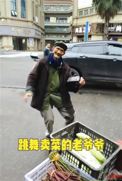 前幾天,一位爺爺一邊賣菜,一邊手拿音響,翩翩起舞,搖頭晃腦,臉上掛著可愛的笑容,十分享受。視頻上網(wǎng)后,引發(fā)大家關注,許多人為老人家樂觀的心態(tài)點贊。