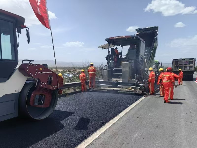 趁熱攻堅,汗水澆筑通途。“瀝青攤鋪必須‘趁熱打鐵’,溫度越高,路面壓實度、密實度就越好!”項目技術(shù)負責人解釋道。烈日炙烤下,瀝青混合料溫度高達160℃,升騰的熱氣裹挾著刺鼻氣味撲面而來,但施工人員手持鐵鍬、緊盯攤鋪機的身影卻始終堅定。每一車瀝青的傾倒下料、每一寸路面的均勻碾壓,都需要在幾分鐘內(nèi)精準完成。豆大的汗珠順著安全帽檐滴落,在瀝青路面上瞬間蒸騰,施工人員的工作服早已被汗水浸透,又在高溫中反復曬干,嶄新的道路,就這樣在灼熱與堅守中悄然延伸。
