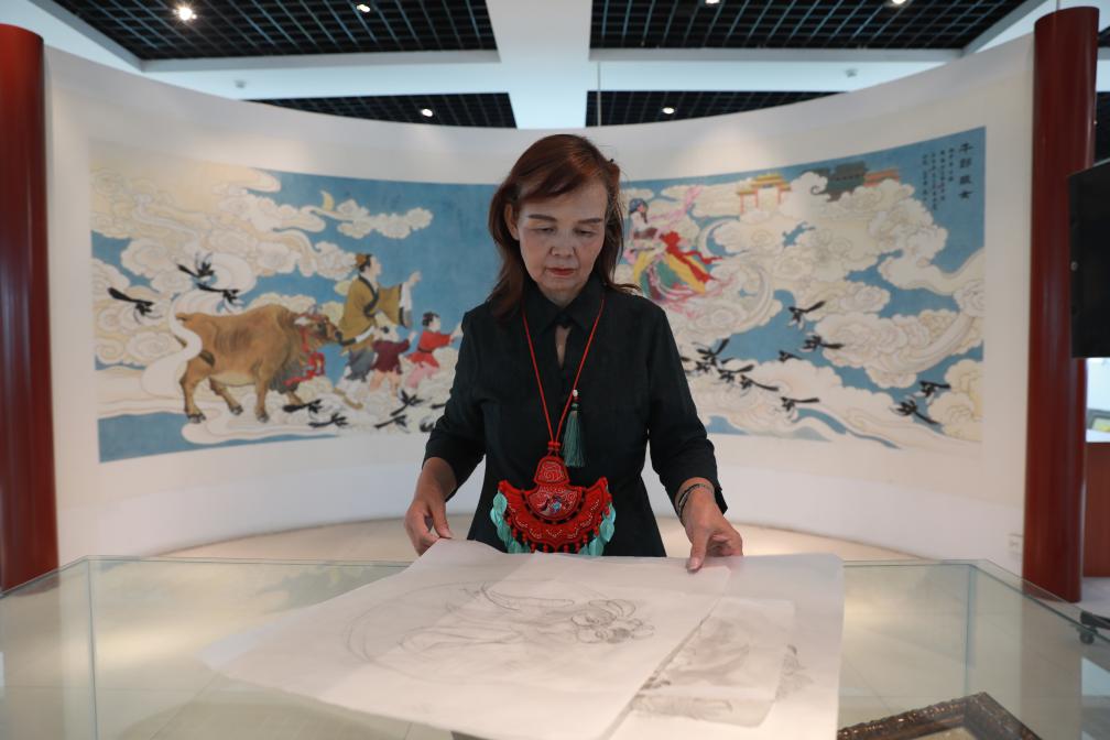圖為“天池”。(受訪者供圖) 口口相傳的故事,成為和順人共同的文化記憶?!皞髡f七月初七的早晨,村里看不見一只飛鳥,它們都去搭鵲橋了?!蹦咸斐卮宕迕耨T秀琴一邊繡著喜鵲圖案的鞋墊,一邊說道,“常聽人說初六晚要早點睡,第二天早起看鵲橋?!彼种械尼樉€熟練地穿梭,將這份古老的傳說“繡”進了日常里。 在和順,“刺繡”與“織女”亦有著巧妙的聯(lián)系。樸素的工作室內(nèi),省級非物質(zhì)文化遺產(chǎn)和順刺繡代表性傳承人范素萍正以針線“編織”牛郎織女的故事。金絲銀線在她的指尖流轉(zhuǎn),繡出鵲橋相會的動人畫面?!昂晚樑酉騺硪源汤C為榮,就像傳說中巧手的織女。”范素萍笑著說道。 范素萍還不斷創(chuàng)新,開創(chuàng)了“層疊立體堆骨繡”技法,使作品呈現(xiàn)浮雕般的立體效果,并在新作中加入“手機”“現(xiàn)代發(fā)型”甚至“宇宙飛船”等當代元素,表達“距離不再是阻隔”的美好祈愿。 同時,她的堅守也讓傳統(tǒng)技藝煥發(fā)經(jīng)濟價值,刺繡產(chǎn)品逐步從實用品向裝飾品方向轉(zhuǎn)變,實現(xiàn)產(chǎn)業(yè)化發(fā)展,讓千年傳說在針線間延續(xù)新的生命。