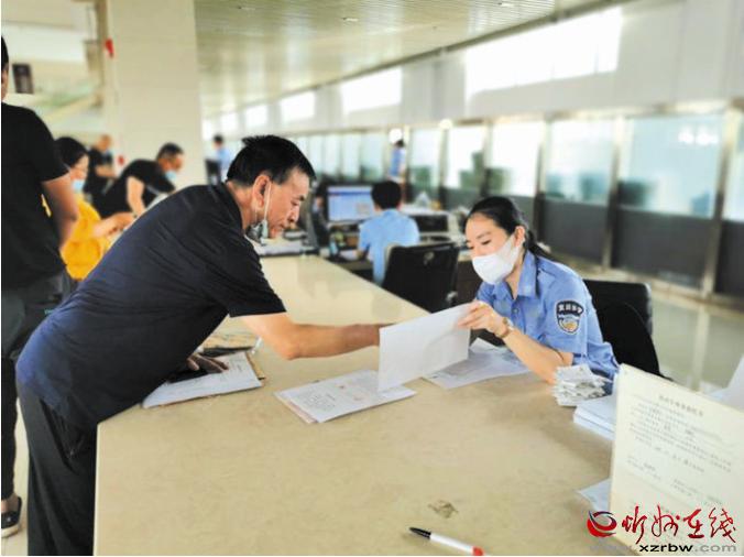近年來(lái),市車輛管理所積極創(chuàng)新管理方式,提高工作效率和服務(wù)質(zhì)量,努力通過(guò)車管所營(yíng)業(yè)廳這個(gè)小“窗口”,為市民提供一流的車輛管理服務(wù)。圖為工作人員在為客戶劉先生辦理業(yè)務(wù)。王金龍 攝