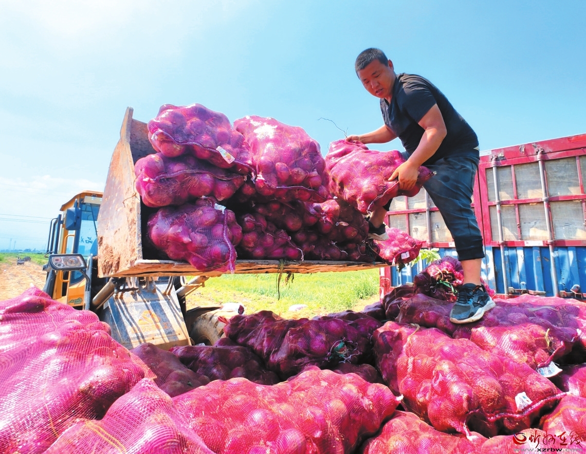 工作人員正在裝運(yùn)洋蔥,準(zhǔn)備發(fā)往外地。本報(bào)記者張存良攝