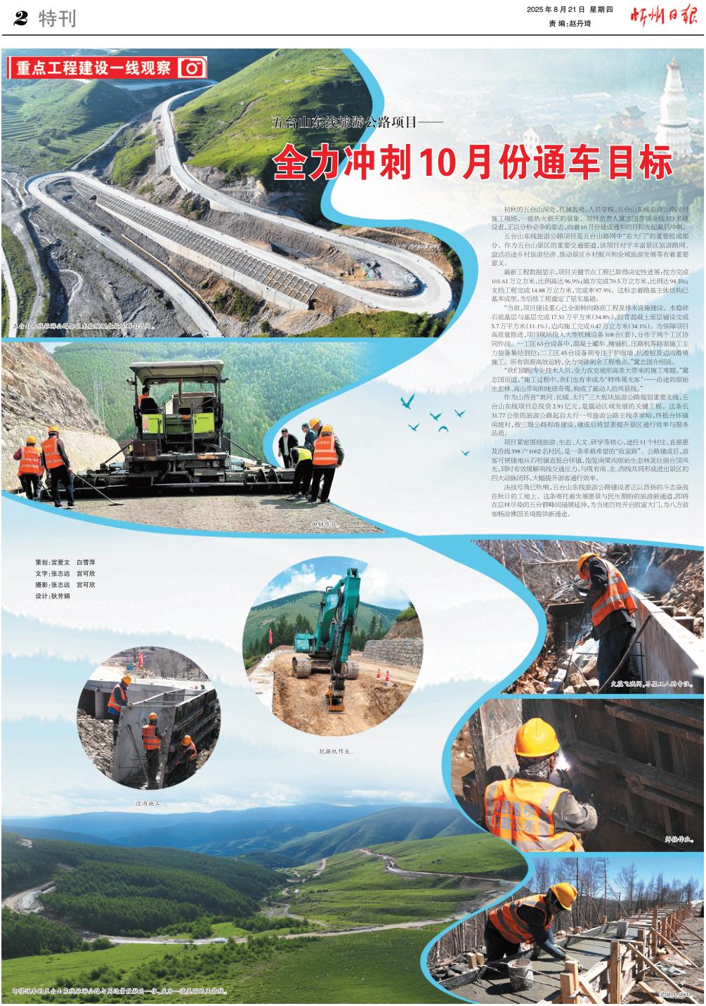 初秋的五臺(tái)山深處,機(jī)械轟鳴,人員穿梭,五臺(tái)山東線旅游公路項(xiàng)目施工現(xiàn)場(chǎng),一派熱火朝天的景象。項(xiàng)目負(fù)責(zé)人冀志國(guó)帶領(lǐng)全線373名建設(shè)者,正以分秒必爭(zhēng)的姿態(tài),向著10月份建成通車(chē)的目標(biāo)發(fā)起最后沖刺。