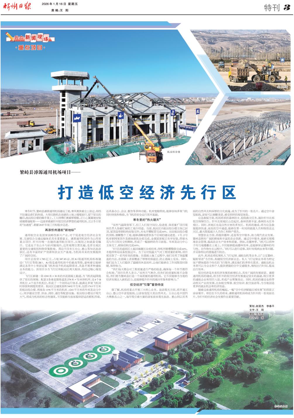 寒冬時節(jié),繁峙縣滹源通用機場建設(shè)工地,寒風裹挾著塵土掠過,卻擋不住建設(shè)者們的熱情。大型壓路機在凍硬的土地上緩緩前行,留下堅實的轍??;航站綜合樓的腳手架上,工人師傅們裹著厚棉服,正小心翼翼地安裝玻璃幕墻框架——這座承載著忻州低空經(jīng)濟夢想的通用機場,正以冬日里的“加速度”,朝著2027年竣工目標穩(wěn)步邁進。