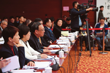 杭侃代表回答記者提問。本報記者李聯(lián)軍 史曉波攝