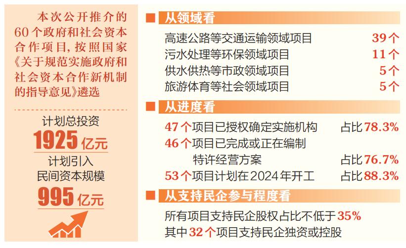 | 遴選項(xiàng)目60個(gè),計(jì)劃總投資1925億元,計(jì)劃引入民間資本規(guī)模995億元 |