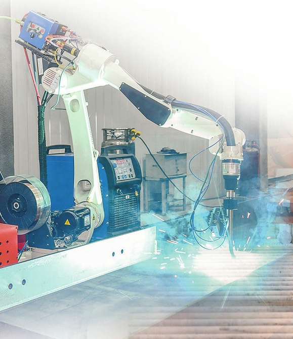 山西中部智造科技有限公司內(nèi),智能機器人在進行焊接作業(yè)。閆銳鵬攝