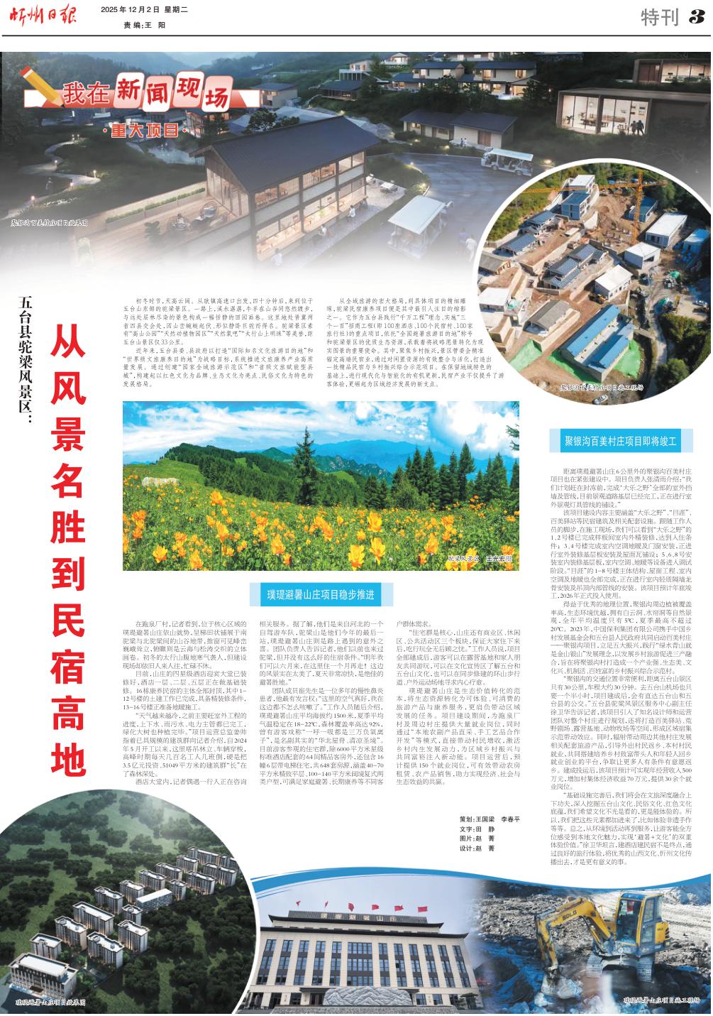 在跑泉廠村,記者看到,位于核心區(qū)域的璞瑅避暑山莊依山就勢(shì),呈梯田狀鋪展于南駝梁與北駝梁間的山谷地帶,推窗可見峰巒巍峨聳立,俯瞰則是云海與松濤交織的立體畫卷。初冬的太行山腹地寒氣襲人,但建設(shè)現(xiàn)場卻依舊人來人往,忙碌不休。