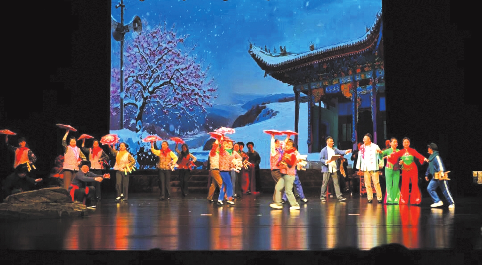 特別值得一提的是,這部劇的全體演員都是河曲本地的民歌二人臺(tái)演員。他們中無(wú)一人有過(guò)音樂(lè)劇表演經(jīng)驗(yàn),卻憑著對(duì)家鄉(xiāng)文化的熱愛(ài)與敬畏,勇敢地踏出了舒適區(qū),從零開(kāi)始學(xué)習(xí)臺(tái)詞、表演、走位、情緒表達(dá),最終在舞臺(tái)上完整呈現(xiàn)了一部結(jié)構(gòu)嚴(yán)謹(jǐn)、情感飽滿的非遺音樂(lè)劇。他們的成長(zhǎng),不僅是藝術(shù)的跨越,更是文化自信的生動(dòng)寫照。