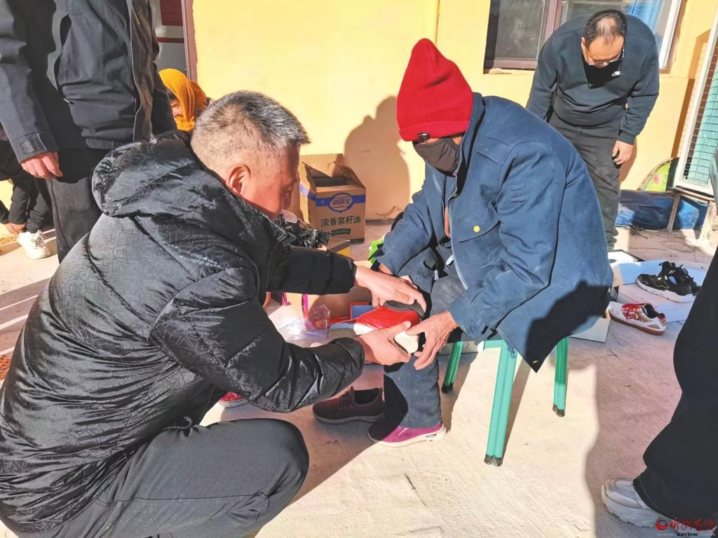 在一位老人家中,工作人員與其促膝交談,親手送上米面糧油等過(guò)冬物資,將組織的關(guān)懷轉(zhuǎn)化為一個(gè)個(gè)具體行動(dòng),讓困難群眾切實(shí)感受到“身邊有人幫、寒冬心中暖”。