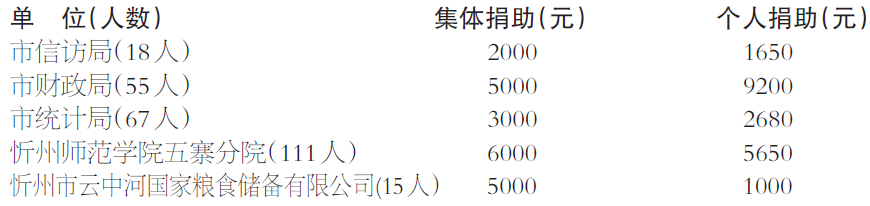 一、集體和個(gè)人同時(shí)捐助的單位(5個(gè)):