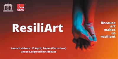 聯(lián)合國教科文組織“漫談堅(jiān)韌藝術(shù)”線上討論的宣傳海報(bào)。此次討論的主題是“藝術(shù)家和創(chuàng)造力如何戰(zhàn)勝危機(jī)”。