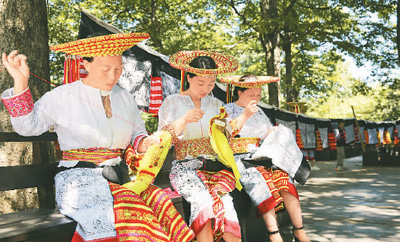 湖南省邵陽市隆回縣虎形山瑤族鄉(xiāng)崇木凼村村民在挑花。曾勇 攝(人民圖片)