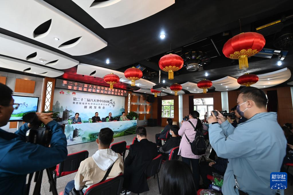 當(dāng)日,第二十二屆八大處中國(guó)園林茶文化節(jié)暨首屆福建柘榮高山白茶文化周在北京舉行新聞發(fā)布會(huì)。據(jù)介紹,該活動(dòng)將于4月28日至5月3日在北京八大處公園舉行。期間,福建省柘榮縣多家茶企業(yè)將在八大處公園內(nèi)設(shè)臺(tái)擺桌,沏茶迎客,供游客品嘗高山白茶,感受白茶特有文化。(新華社記者 李俊東 攝)