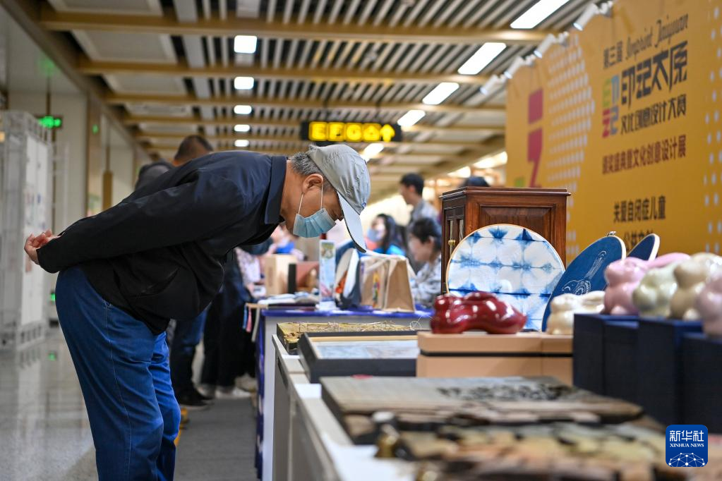 5月9日,在太原地鐵2號線大南門站,市民參觀第三屆“印記太原”文化創(chuàng)意設計展。