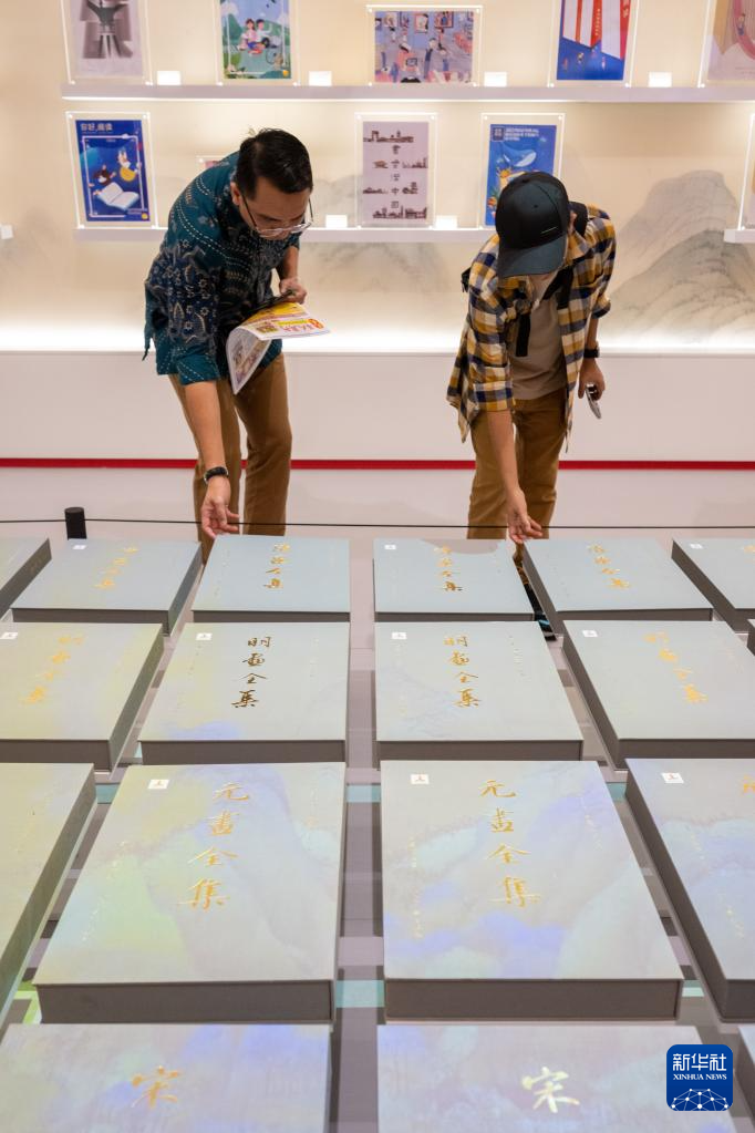 悠揚(yáng)的古琴響起,《千里江山圖》通過(guò)高流明投影在一排排書(shū)籍封面上流動(dòng)。“中國(guó)歷代繪畫(huà)大系”(簡(jiǎn)稱“大系”)特展日前亮相吉隆坡國(guó)際書(shū)展中國(guó)主賓國(guó)活動(dòng),“畫(huà)”與“書(shū)”通過(guò)光影巧妙結(jié)合,立體獨(dú)特的展現(xiàn)方式讓觀眾沉浸在中國(guó)古代繪畫(huà)藝術(shù)之美中。
