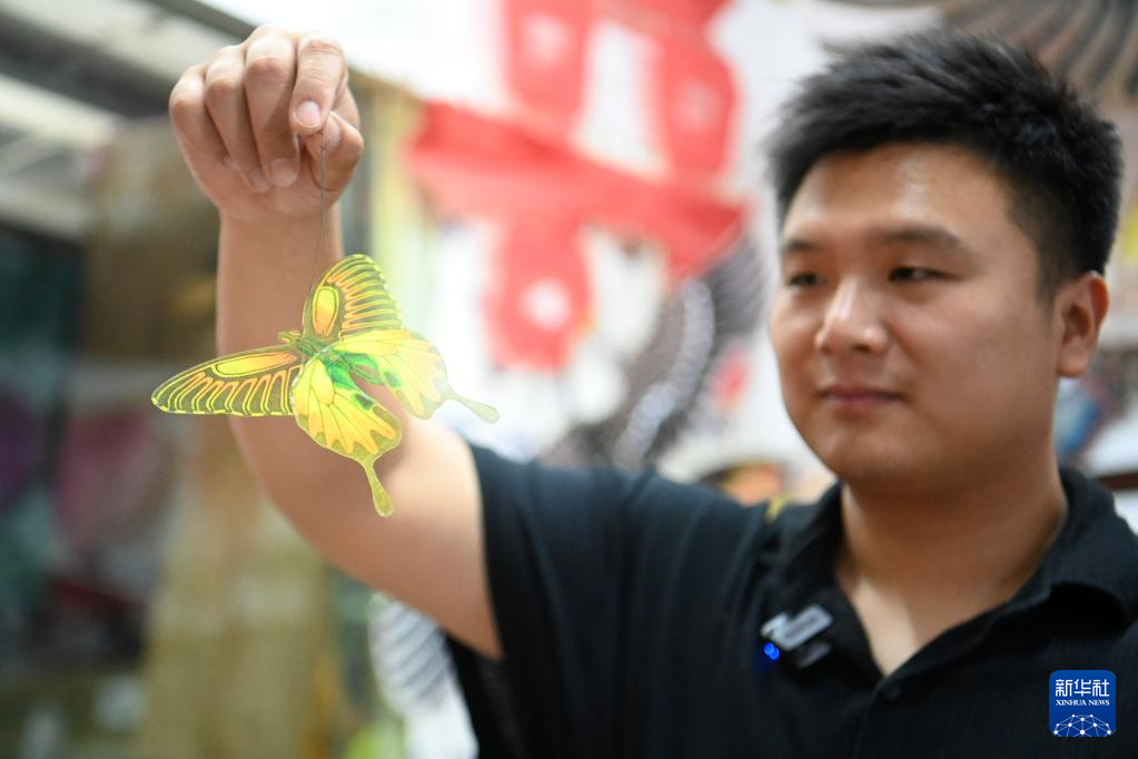出身風(fēng)箏世家的魏博文大學(xué)畢業(yè)后,回到家鄉(xiāng)跟隨父親魏國秋“入行”做風(fēng)箏。他從自己有所基礎(chǔ)的繪畫著手,發(fā)揮年輕人的創(chuàng)新優(yōu)勢,在風(fēng)箏設(shè)計上屢屢出新,不僅與一些游戲公司合作推出風(fēng)箏聯(lián)名款,還推動風(fēng)箏制作技藝的改進(jìn)創(chuàng)新,設(shè)計了適合在室內(nèi)放飛的迷你風(fēng)箏。