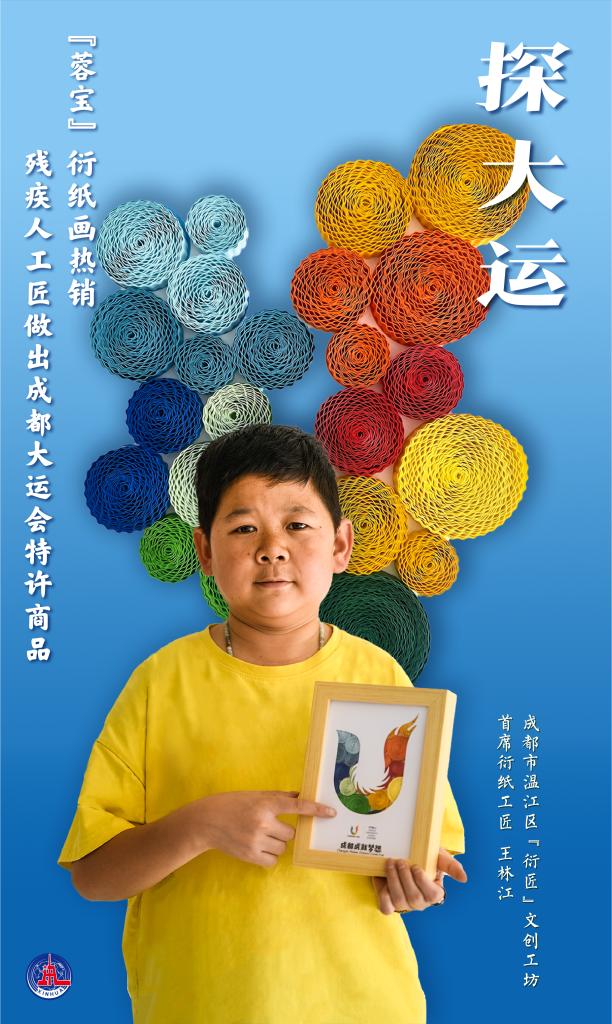 與其他大運會特許商品不同,制作這些充滿巧思的衍紙畫工藝品的工匠們都是溫江當地的殘疾人。