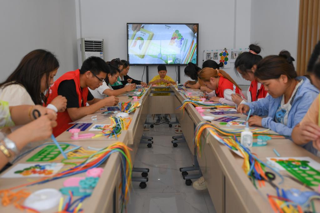 7月5日,在成都市溫江區(qū)衍匠文創(chuàng)工作室,不少市民前來體驗衍紙畫制作。新華社記者 胥冰潔 攝