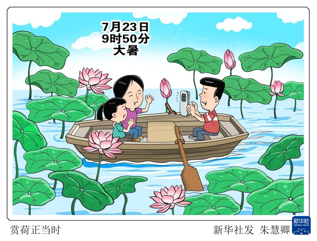 新華社天津7月22日電(記者周潤健)“小暑不算熱,大暑三伏天?!北本r(shí)間7月23日9時(shí)50分將迎來二十四節(jié)氣中夏季的最后一個(gè)節(jié)氣——大暑。此時(shí)節(jié),雖然溫高而氣濕,但也是荷花開得最盛的時(shí)候,青翠欲滴的荷葉、亭亭玉立的蓮蓬、紅白輝映的荷花,令人賞心悅目。