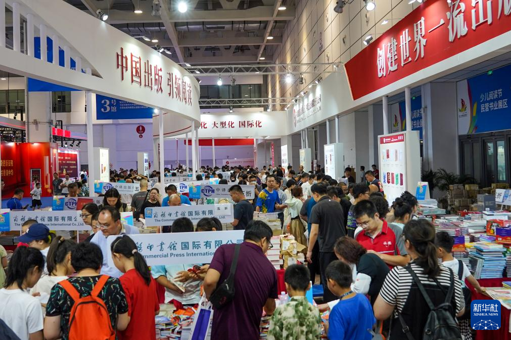 連日來,在山東濟南舉行的第31屆全國圖書交易博覽會吸引了大批讀者前來閱覽選購。本屆書博會以“奮進新征程 書香潤中華”為主題,來自全國各?。▍^(qū)、市)和港澳臺的1700多家出版印刷發(fā)行單位參展,線上線下共展出各類出版物70多萬種。(新華社記者 朱崢 攝)