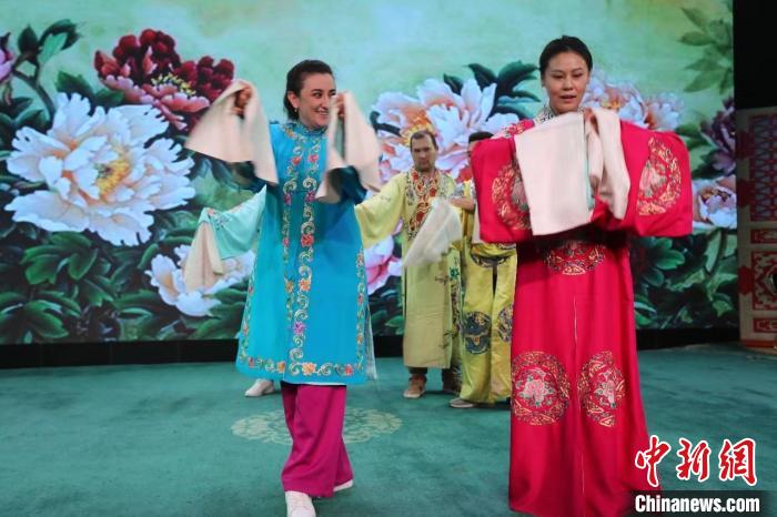 中亞媒體高層觀(guān)看了京劇表演,并與京劇演員互動(dòng)。陶拴科 攝