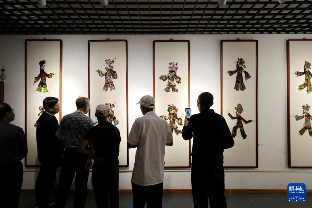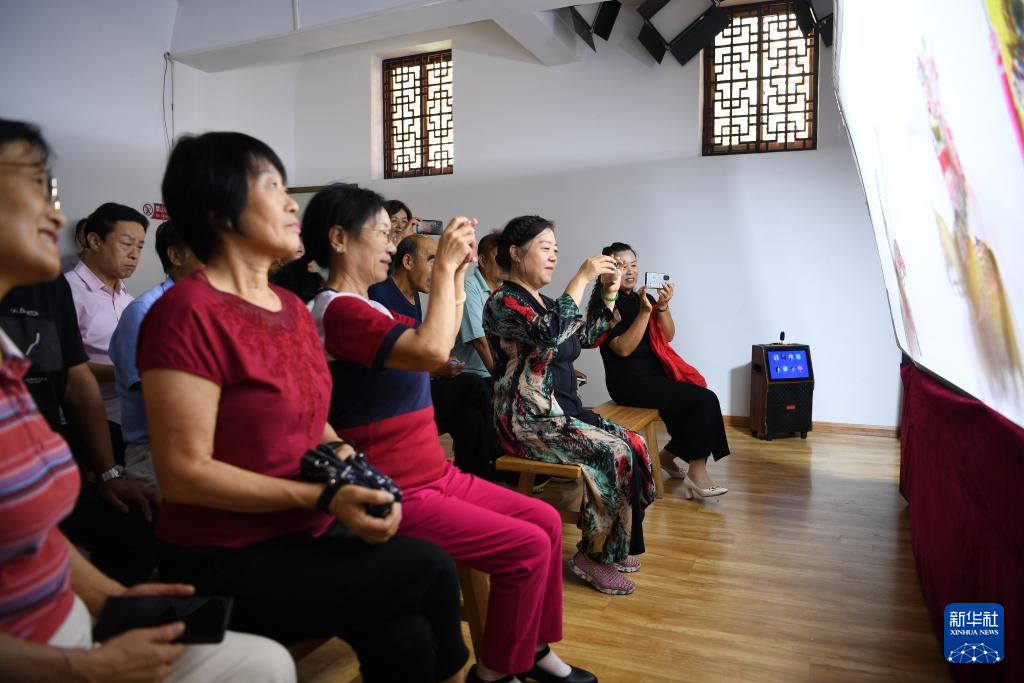 9月16日,市民在玉田縣“非遺會客廳”皮影工坊內(nèi)觀看皮影戲表演。