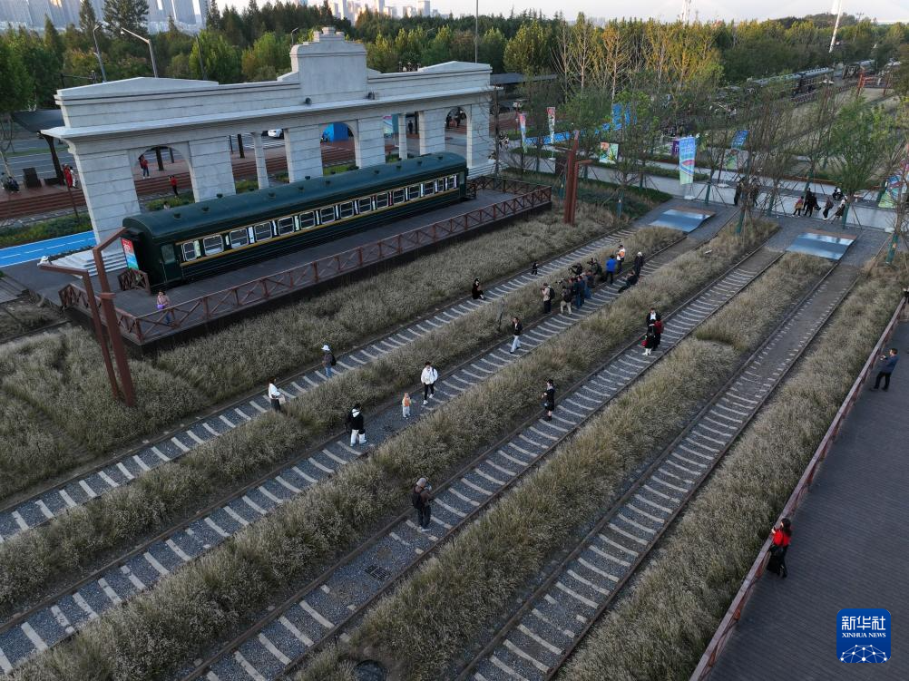 11月6日,游人在武漢市武昌四美塘鐵路遺址文化公園游覽(無人機照片)。