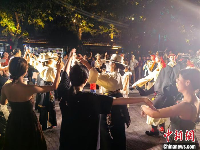 值得一提的是,為了讓觀眾更好地感受橫斷秘境的特色,開(kāi)幕式當(dāng)晚,甘孜州木雅文化藝術(shù)博覽中心的演員們繼續(xù)在中國(guó)刀剪劍博物館、中國(guó)傘博物館的運(yùn)河入口處,進(jìn)行鍋莊舞表演,帶領(lǐng)民眾共同感受鍋莊舞這一國(guó)家級(jí)非遺的魅力。