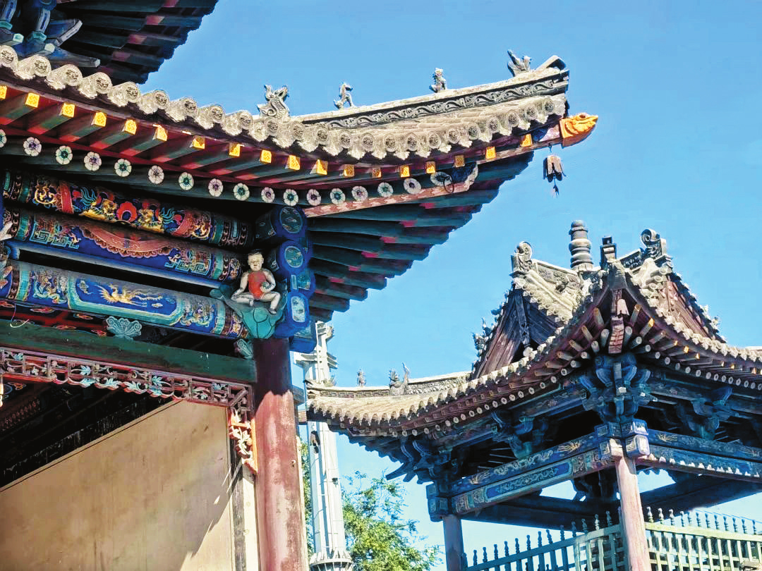 武廟內(nèi)的主要建筑是按照帝王殿宇的規(guī)制和風(fēng)格建造,以關(guān)帝殿為例,屋頂采用的是單檐廡殿頂,構(gòu)架為七檁前后廊式,前后檐柱頭科為五踩單翹單昂,前檐明次間施四扇六抹格扇門。廟內(nèi)楹聯(lián)所題文字均鑲銅材,各殿塑像也多為銅制,這與代縣歷史上盛產(chǎn)銅且擅長(zhǎng)制作銅器有很大關(guān)系。