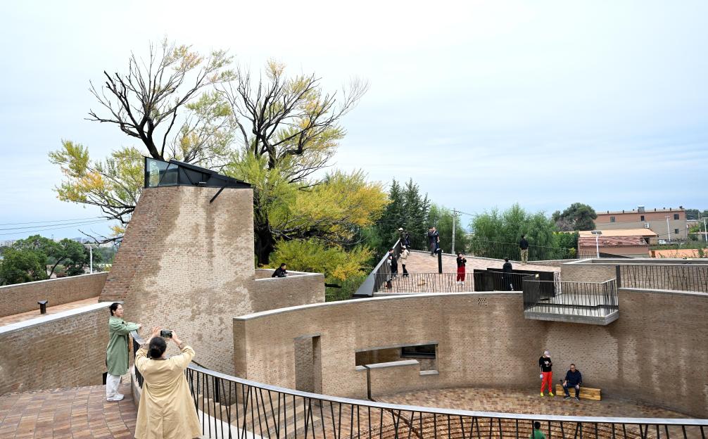 9月16日,市民在內(nèi)蒙古自治區(qū)呼和浩特市回民區(qū)攸攸板鎮(zhèn)西烏素圖村“回”空間藝術(shù)中心參觀(guān)游玩。新華社記者貝赫 攝